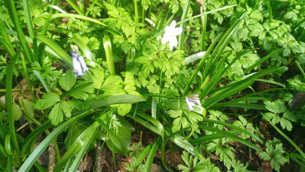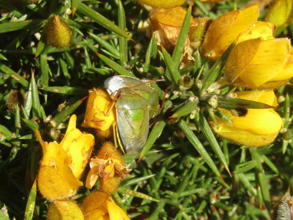 Walking up Brakey Bank this morning I was pleasantly surprised to find some Bluebells out in flower and fully out too. Not many but plenty of Wood Anemones, a few Celandines and a couple of Red Campion too. That coupled with finding two Gorse Shieldbugs on Monday makes one feel that despite the incessant wind and rain, Spring is still able to make it’s presence felt.
