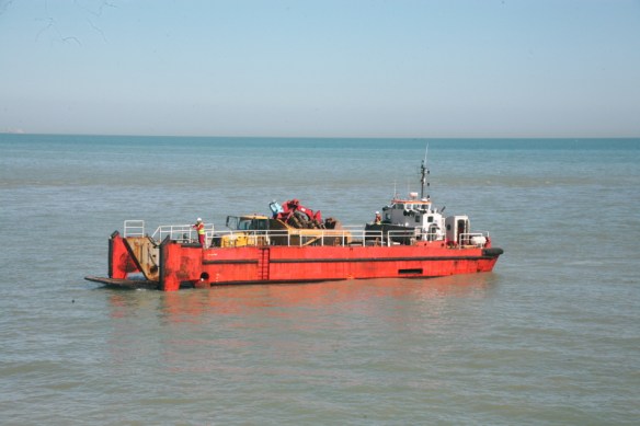 It seems that the Stema Barge II will be empty tomorrow. It will be interesting to see how many loads it takes to complete the works.