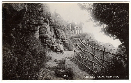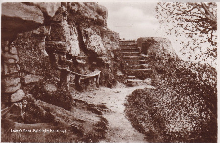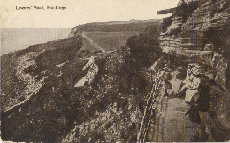 Lovers’ Seat was shown on a map in the Hastings Guide in 1794 and many different stories about it have been written. Recorded facts do not bear out most of what is in these accounts and I propose here to leave it as a story that has served Hastings well as a tourist attraction. It is a shame that there in now nothing for visitors to see but I won’t dwell on that either.